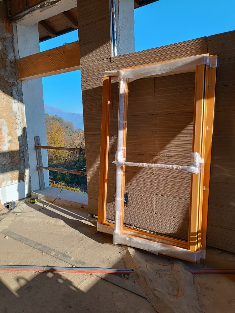 - completato l’isolamento interno con la posa delle lastre in argilla e fibre vegetali, utilizzate in bioedilizia, utili per aumentare l’inerzia termica e regolare l’umidità degli ambienti;