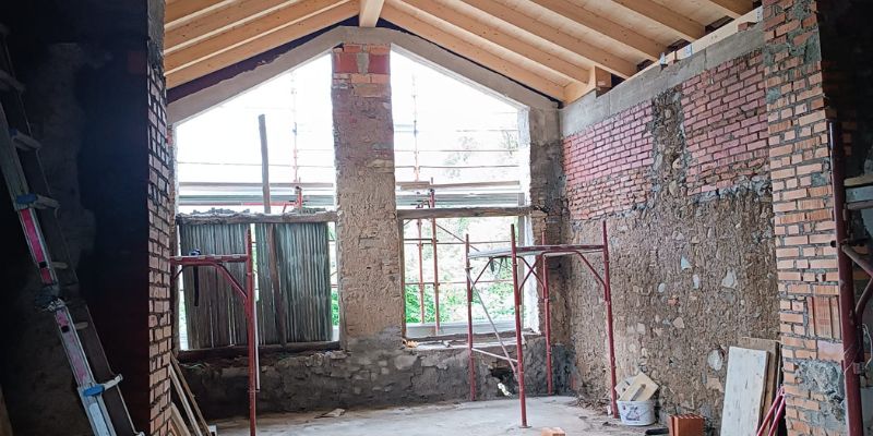 Conclusa anche la modifica e la nuova apertura dei vani di porte e finestre, mentre sono iniziati i lavori di ripristino degli intonaci delle facciate esterne.